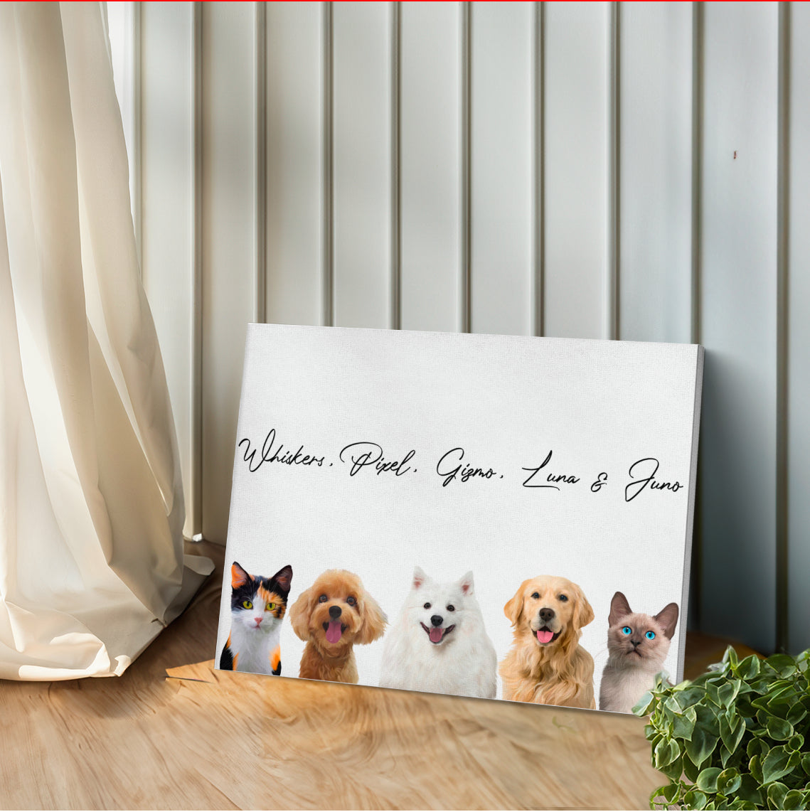 Pet portraits are printed on gallery-quality canvas and ready-to-hang components come pre-attached to the high-quality backings.