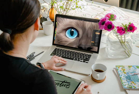 A digital pet portrait is a custom-made digital artwork of your pet, created by an artist using digital tools such as a graphics tablet, software like Adobe Photoshop or Procreate.
