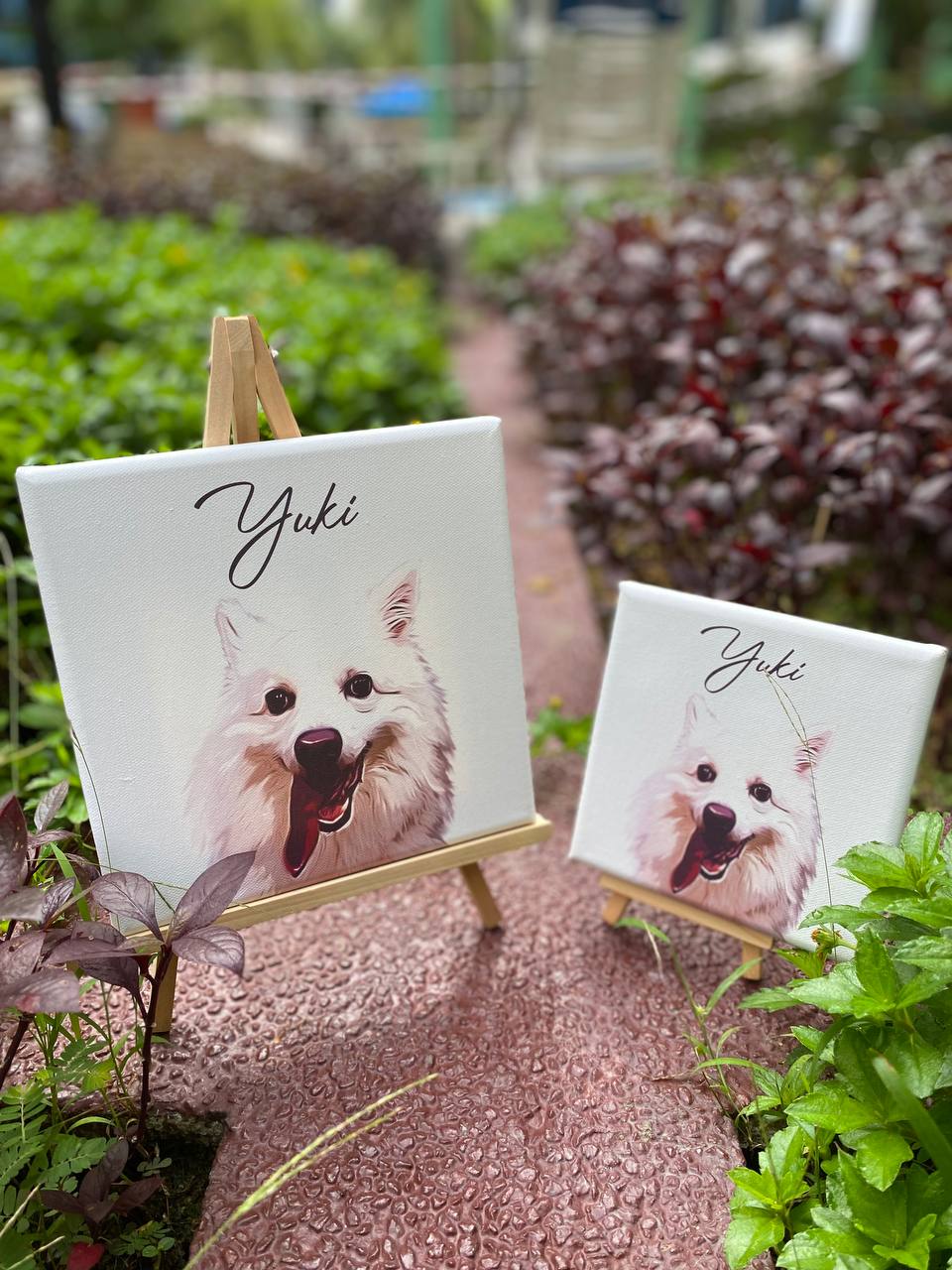 Pet portraits are printed on gallery-quality canvas and ready-to-hang components come pre-attached to the high-quality backings.