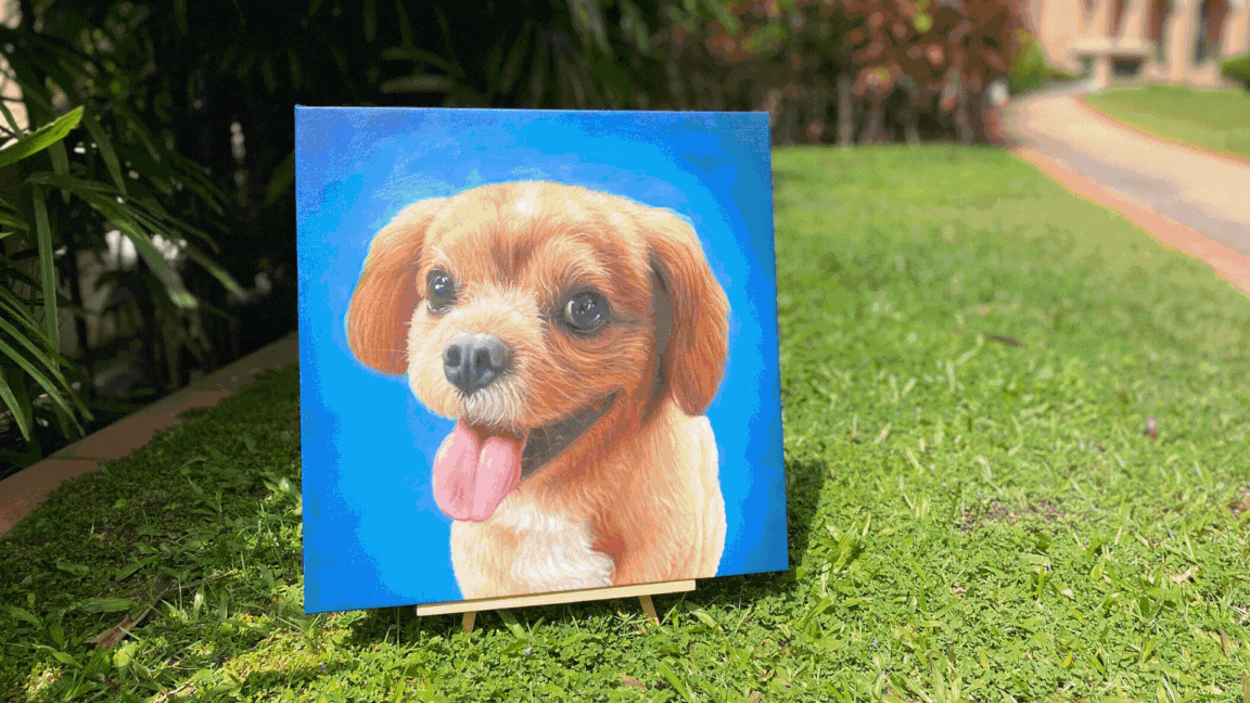 Our artists aren’t computers. Each piece of custom pet art is painted with care, love, and dedication, bringing your beloved pet’s personality to life.